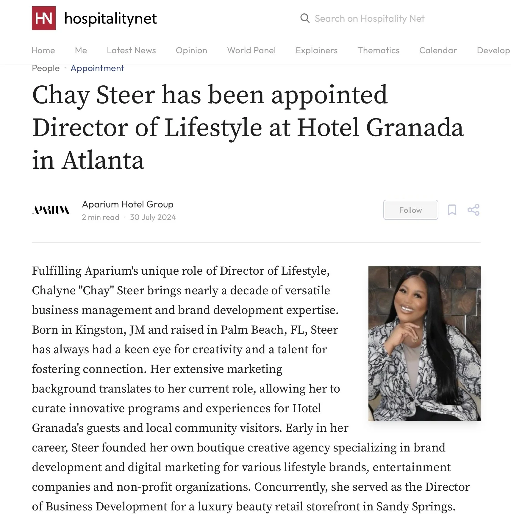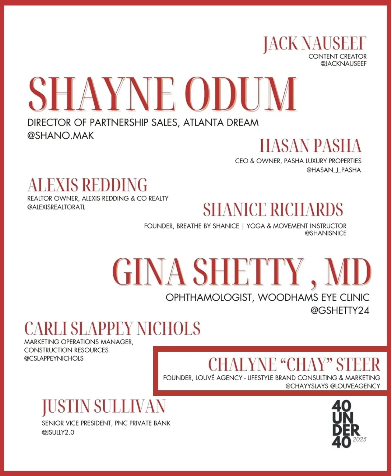 • Recognized in Modern Luxury’s 40 Under 40 — Class of 2025, honoring the city’s leading young professionals, creators, and entrepreneurs